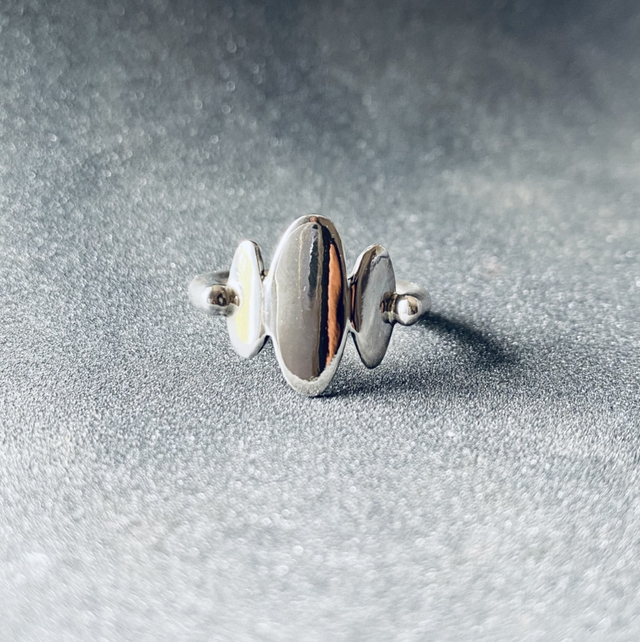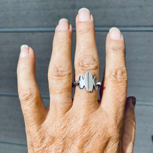 Bague 3 galets sur jonc épais en argent 925 brillant. Bijou unique au design organique de galets polis.